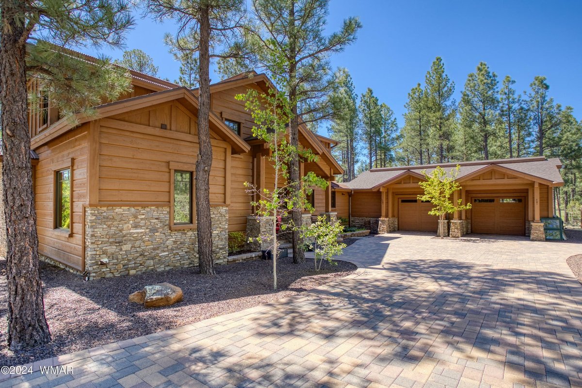 Exceptional mountain luxury home in the prestigious gated Sierra Springs Ranch. This community sitting on 76 acres in the middle of the Sit greaves National Forest is a hidden gem in the White Mountains of Arizona. Premier Smart Home with separate guest house is light, airy and luxurious. Backing National Forest with lake and creek views in the front. This home offers a sprawling 4127 combination square foot of beautiful living spaces with 3 bd + loft, 2.5 bath in main house & 2 bedroom, 2 bath in connecting guest house. Entering the main home you are greeted by towering 24 ft ceilings, floor to ceiling stacked stone FP & gourmet kitchen with top of the line appliances. 14 ft disappearing wall of windows, retractable glass pocket door leads out to a large covered deck with breathtaking views of the lake. Many custom features in this one of a kind mountain luxury home. Walking paths, bridges, lakes, kayaking, fishing are just a few of the many amenities Sierra Springs has to offer. An abundance of trails surround you just outside the gates of Sierra Springs Ranch. A beautiful clubhouse sitting on the main lake with a large patio, great room, game room and exercise room to enjoy as well. Sierra Springs Ranch community has its own 2 fresh water wells which is the best water on the mountain!