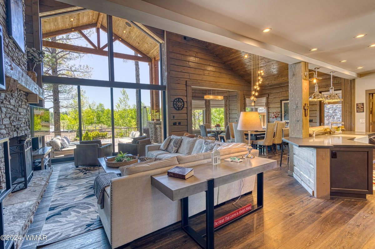 Exceptional mountain luxury home in the prestigious gated Sierra Springs Ranch. This community sitting on 76 acres in the middle of the Sit greaves National Forest is a hidden gem in the White Mountains of Arizona. Premier Smart Home with separate guest house is light, airy and luxurious. Backing National Forest with lake and creek views in the front. This home offers a sprawling 4127 combination square foot of beautiful living spaces with 3 bd + loft, 2.5 bath in main house & 2 bedroom, 2 bath in connecting guest house. Entering the main home you are greeted by towering 24 ft ceilings, floor to ceiling stacked stone FP & gourmet kitchen with top of the line appliances. 14 ft disappearing wall of windows, retractable glass pocket door leads out to a large covered deck with breathtaking views of the lake. Many custom features in this one of a kind mountain luxury home. Walking paths, bridges, lakes, kayaking, fishing are just a few of the many amenities Sierra Springs has to offer. An abundance of trails surround you just outside the gates of Sierra Springs Ranch. A beautiful clubhouse sitting on the main lake with a large patio, great room, game room and exercise room to enjoy as well. Sierra Springs Ranch community has its own 2 fresh water wells which is the best water on the mountain!